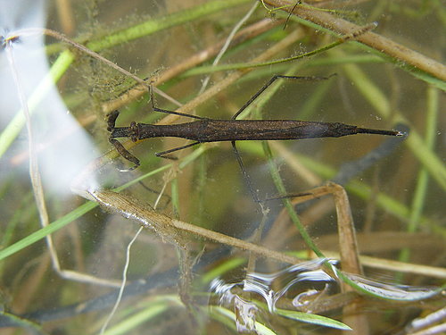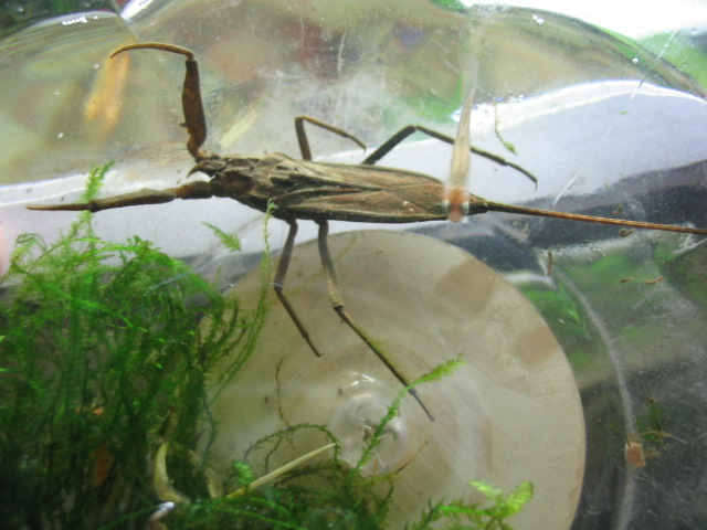 “草鞋只”,是乡下人对它的形象叫法,它的学名叫蝎蝽、红娘华、大红娘华,是生活在水里的昆虫。蝎蝽以捕食水蚤、蚊幼等细小的水中生物为生,大的成虫还会捕食刚孵化不久的鱼苗和小蝌蚪。