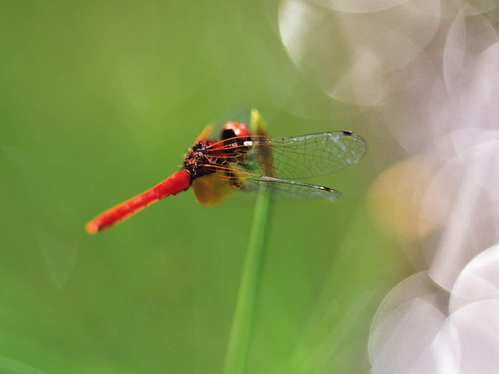 不仅仅在乡下,在城市里的很多公园中也能常见到蜻蜓的。蜻蜓是飞在空中的,但其实蜻蜓的一生里,大部分时间是在水里渡过的。蜻蜓在空中飞行时交尾,然后雌蜻蜓在水面上飞行时,分多次把卵产在水中,我们常看到有些蜻蜓久不久地会用尾巴点触一下水面,那可不是它在玩水,那是它在产卵呢!有个词语叫“蜻蜓点水”,那说的就是蜻蜓在进行“产卵表演”。