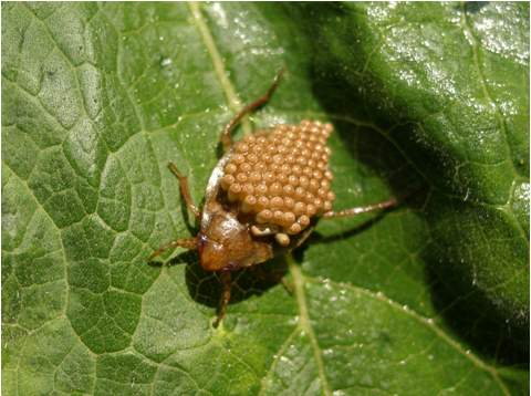 这些虫子背后的疙瘩,并不是它长瘤了,那些疙瘩是虫卵,它们把虫卵背负在自己的身上,为的是更好的把小虫子孵育出来,所以这个虫子的名字就叫:负子虫。