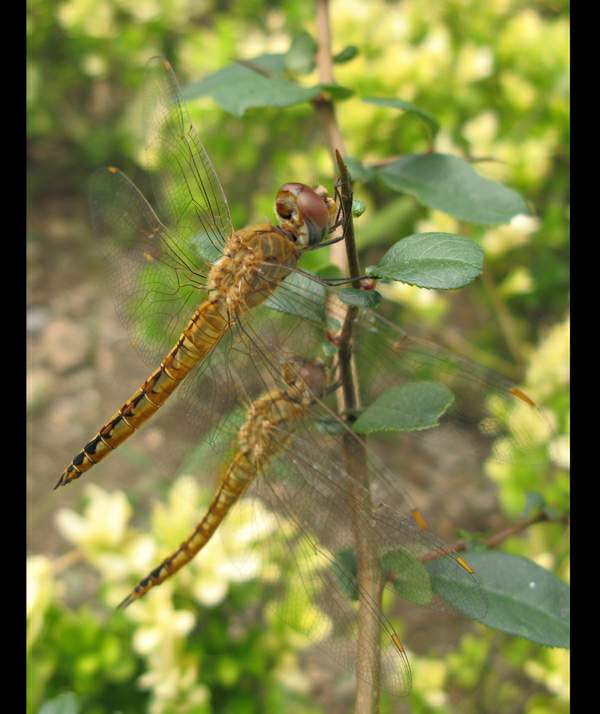 蜻蜓,在我们的家乡话里叫它为“扬飞”、“扬飞子”,听名字就可知道那是一种轻飘飘的,可以在空中飞扬的东西,很是像形的名字。同样的名字还有蝴蝶,在我们的家乡话里,蝴蝶被叫作“扬叶”,“扬叶子”,就是会飘扬的树叶子。