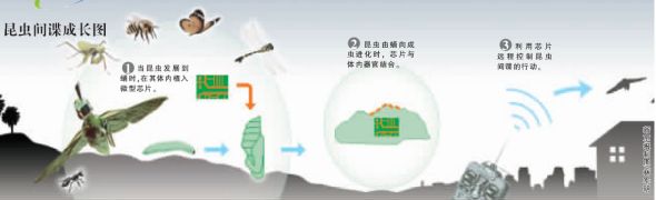 美国国防部先进研究项目局的研究人员相信,可以利用昆虫在变化成蛹期间的特性来将其改装成机器昆虫。因为昆虫在每个变态发育阶段,其身体都会完成一次更新,伤口能得到修复,被植入异物后内部器官会重新排列。