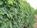 在砖墙或水泥墙上攀附高度可达20m以上,故有“爬墙虎”“趴壁虎”等称号。其蔓茎纵横,叶密色翠,春季幼叶、秋季霜叶或红或橙色,堪供观赏,且生长快、病虫害少,无论建筑物东、西、南、北面,墙垣、假山、阳台、长廊、栅栏、岩壁,棚架都能靠卷须上的吸盘和气生根攀附而上并正常生长,是观赏性和实用功能俱佳的攀援植物,应用甚广,特别建筑物墙面绿化的应用非常普遍。除攀援绿化,也可用作地被