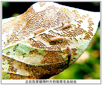 梨星毛虫在我国主要分布于辽宁、河北、山西、河南、陕西、甘肃、山东等省。主要寄主植物是梨、苹果、海棠等。