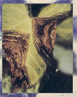 症状:初在叶片上产生水浸状病斑,有时病斑周围有晕圈,但该病晕圈与其它细菌性病害不同。病斑扩展较快,呈明、暗相间的同心圆状。但在高温多湿时,这种同心圆则不明显。