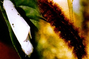 为害特点 幼虫食叶成缺刻或孔洞,严重的仅留叶脉,近年河北常有大发生的报道。