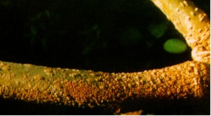 网站导航 症状 又称粗皮病。多发生在3—5年生的桑园中,有时成片发生,长、粗的枝条或大苗易发病,桑园夏伐后从新条基部开始发病,后向上扩展,到秋季症状趋于明显。初发病时在主干的表皮或枝条基部产生许多微小的突起,后突出部分相互融合至绕枝一周,枝条的皮孔外突,皮部粗糙,严重的染病处皮层产生细裂纹,有时病枝基部软化或枝条倒伏,秋季叶片变形皱缩,叶脉、叶柄褐变、硬化、易脱落。造成下年发芽延迟,发芽率下降。严重的枝条不发芽或发芽后凋萎,枝干逐渐干枯而死。