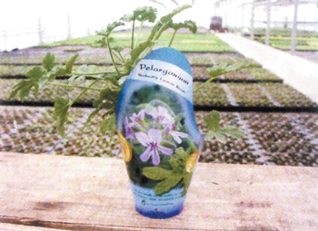 获本次植物商用创新奖第一名的是:一系列芳香型杂交天竺葵,它们既可观赏也可食用,由DM资源中心展示。每个品种的香味都经过专业的鉴定而分类。图中蓝色花器可生物降解,上面注有品种名、香气类型以及将该天竺葵用于调味品的配方。