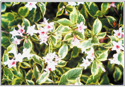 网站导航花叶锦带花,春、夏、秋三季观叶,初夏赏花。叶黄绿相间,花初开时呈白色,而后逐渐变为粉红色。花叶锦带花不但是美丽的花灌木,而且是优良的环境保护植物,它对二氧化硫、氯化氢有较强的抗性,并能吸附粉尘,净化空气。