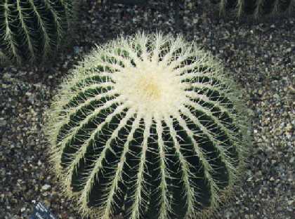 生态习性:茎圆球形,单生或成丛,高1.3米,直径80厘米或更大。球顶密被金黄色绵毛。有棱21-37,显著。刺座很大,密生硬刺,刺金黄色,后变褐,有辐射刺8-10,3厘米长,中刺3-5,较粗,稍弯曲,5厘米长。6-10月开花,花生于球顶部绵毛丛中,钟形,4-6厘米,黄色,花筒被尖鳞片。习性强健;喜石灰质土壤,要求阳光充足。