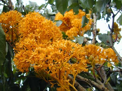 无忧花属云实科中等常绿乔木,树型美观,枝叶繁茂,是上等的风景树。虽然无忧花比较细碎,大小如指甲,但一旦开花,则数量众多,常常一串串、一簇簇地直接开在树干上,且金黄鲜艳,美丽异常,可以说是当地人们最喜爱的老茎生花了。