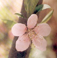 形态特征:落叶乔木.叶椭圆状披针形,边缘有粗锯齿,无毛,叶柄长1.0CM-1.5CM.花单生,先叶开放,几无柄,多粉红色,5瓣.花期3月-4月,6月-9月果熟.变种有深红.绯红.纯白及红白混色等花色变化以及复瓣和重瓣种.