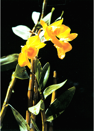 迭鞘石斛茎直立,圆柱形,上部弯曲,叶呈2列,狭矩圆形或矩圆状披针形,总状花序常生于无叶的茎上端。