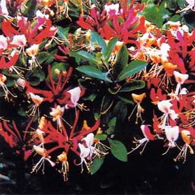 忍冬科忍冬属,原产欧洲及北非,西亚地区。落叶藤本。茎有时长达6米。叶片卵形、卵状椭圆形或倒卵形,有时具柔毛,长6.5厘米,宽3.5厘米,叶表面亮绿色,叶背面淡粉色,每对叶分离。
