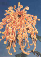 花瓣上有条沟。舞环型。巨大轮花,花径30-35厘米,露心。长尖叶,边缘有锯齿及尖齿状,叶片中深裂,长叶柄,基部有大托叶。茎梗褐绿色,中粗,高。中花期。优秀名菊,品种展佳品。生长势中,适宜独本、三本菊培植。