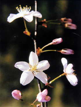 花与叶同时开放,1~2朵生于叶脉,花瓣白色或微带红色,直径1.5厘米。花期4月。