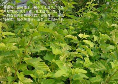 蔷薇科,落叶灌木,单叶互生,三角状卵形至广卵形,3-5浅裂,具复锯齿,春季叶子金黄色,夏秋黄绿色。