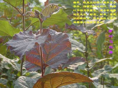 榛科榛属,较直立的落叶灌木至小乔木,深紫色的心形叶,秋季叶片转为灰紫色,十分美丽。