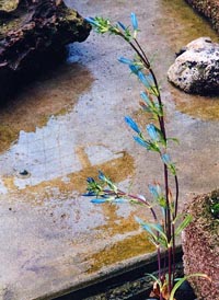 网站导航龙胆科,龙胆属,高山龙胆组。多年生草本,高20—30厘米。基部被枯萎叶鞘包围。枝丛生,常带紫红色,密被乳突。基生叶多数,卵状椭圆形,长2—3厘米,宽0.5—1.5厘米,先端钝,叶脉1—3条,于叶面不显,背面凸出,叶柄膜质,长2—2.5厘米;茎生叶卵状椭圆形至长条形,长2—4厘米,宽0.4—1.5厘米,先端钝至渐尖,基部渐狭,叶脉1—3条,于叶面不显,背面微凸出,叶柄长0.5—1.5厘米,愈向茎上部叶愈小,柄愈短。花多数组成圆锥状聚伞花序,顶生及腋生,总花梗长达4厘米;花梗常带紫色,不等长,长从0.5—2.5厘米,密被乳突;花萼筒形,长6—10毫米,萼管草质,一侧开裂成佛焰苞状,萼齿小、直立,不整齐,线状钻形,长0.5—1.5毫米,弯缺圆形,花冠漏斗形,深蓝色,无条纹和斑点,长2—2.5厘米,裂片卵形,长3—4毫米,先端钝,全缘,褶偏斜,戟形或三角形,长1.5—2毫米,边缘有不规则细齿;雄蕊着生花冠管中部,花丝丝状钻形,长5—10毫米,花柱粗短,长2—2.5毫米,柱头2裂,裂片半圆形。蒴果内藏,长椭圆形,长9—12毫米,两端钝,柄长6—10毫米;种子长圆形,长1毫米左右,表面具海绵状网隙。花期7—8月,果期9—11月。