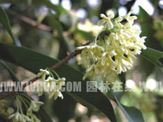 杭州偶见栽培。树冠密集,树形优美,新叶紫红,花朵繁密,香气浓郁,花梗细长下垂,形似玉帘,为桂种珍品。