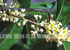 小乔木,树冠阔圆头形。叶长椭圆形或椭圆形,全缘。叶面较平整,先端钝尖或短渐尖。9月下旬至10月上旬开花,每花序有花7~9朵,花乳白色或浅黄白色,花香极浓郁,花冠斜展,花瓣倒卵形或倒卵状椭圆形。