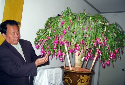 新安江育新小区退休老人傅承云家有一盆仙人掌上长出蟹爪兰。连日来,上层下层里里外外五、六百朵花儿竟相绽放,争奇斗艳,令人叹为观止。仙人掌有“干不死”的美誉,钟情于养花弄草的老傅异想天开,把蟹爪兰嫁接在仙人掌上。经过五年的培育管理,前年开始开花,可当时只有四、五朵。今年12月2日这盆蟹爪兰又开出第一朵小红花,随后这株直径110厘米、高55厘米的蟹爪兰竟相绽放,仔细数一数足足有五、六百朵,老傅心里乐开了花。蟹爪兰又名锦上添花,由于它在冬季开花,又叫圣诞仙人掌,很受人们的喜爱。