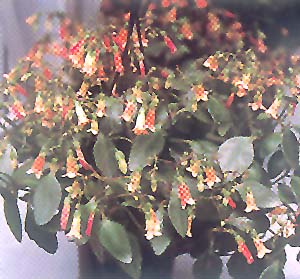 茎直立,株高10-30cm。株幅15-30cm。全株光滑无毛。叶肉质,交互对生。长圆形,叶片上半部具圆齿或呈波状,下半部全缘,深绿,有光泽,边缘略带红色。圆锥状聚伞花序,直立,单株有花序6-7个,着花80-290朵,小花高脚蝶状,花色有绯红色、桃红或紫红等。