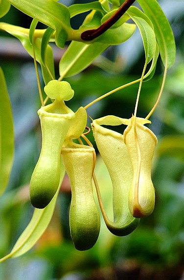 猪笼草是有名的热带食虫植物,主产地是热带亚洲地区。猪笼草拥有一幅独特的吸取营养的器官——捕虫囊,捕虫囊呈圆筒形,下半部稍膨大,因为形状像猪笼,故称猪笼草。在中国的产地海南又被称作雷公壶,意指它像酒壶。这类不从土壤等无机界直接摄取和制造维持生命所需营养物质,而依靠捕捉昆虫等小动物来谋生的植物被称为食虫植物。