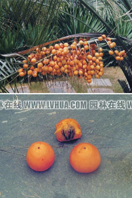 在上海绿地露地栽培的南方棕榈类植物中,布迪椰子是较少能结果的种类,且种子能正常繁殖,出苗率较高,说明该植物适合上海的自然条件。其果序大型,果实橘黄色,是很好的夏、秋季观果植物。