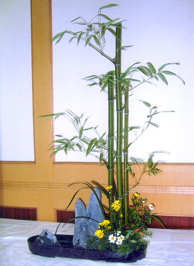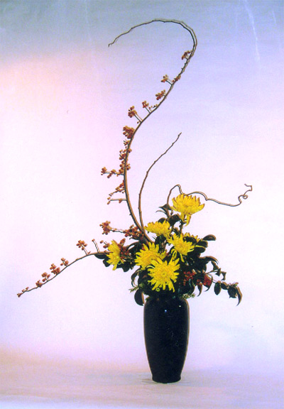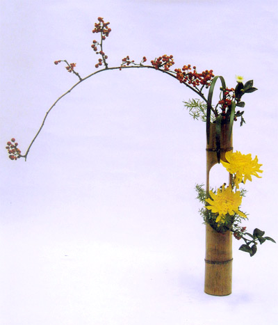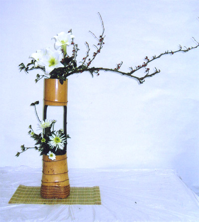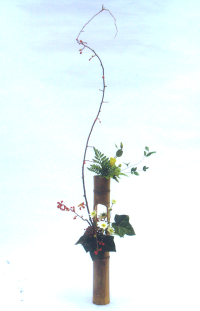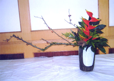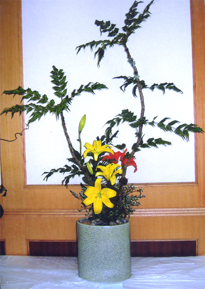 花材:阔叶十大功劳、百合、洋桔梗、蓬莱松