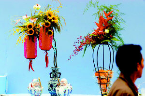 中华园林网10月10日消息:重庆第三届插花艺术展将于今天起至14日在解放碑步行街举行。 昨日下午,100盆精美的插花艺术作品在解放碑布展完成。 据市园林局绿化处负责人介绍,此次展览由我市11个区级园林部门参加。作品主题分别为“东方式瓶花”、“繁华都市·家园”、“商业橱窗插花或宾馆大堂插花”、“家庭客厅插花”等5项。