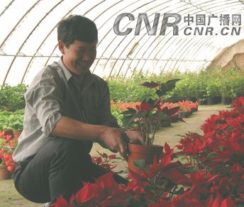 3月23日,记者在焉耆回族自治县七个星镇呼拉尔墩村高社平的鲜花大棚里闻到了花儿的清香,也看到了鲜艳的花朵。这里不但有金橘、红掌、蝴蝶兰等名贵花种,还有一品红、三角梅等大众花卉,温暖的阳光透过暖棚照射进来,五颜六色的花朵显得格外精神。高社平告诉记者,他以前在新疆库尔勒种花,效益还不错。后来家乡的七个星镇呼拉尔村领导邀请他回来养花,带动家乡鲜花种植业的发展。他详细一考察,原来家乡七个星镇呼尔墩村水土条件更适宜种花。去年夏天,高社平毅然回到家乡,种了两万盆花。今年春节前,一次性销售1万盆,纯收入10万元,比以前过去养花一年的收入还多。高社平尝到了在家乡养花的甜头,而他又带动了本村农民养花的积极性。