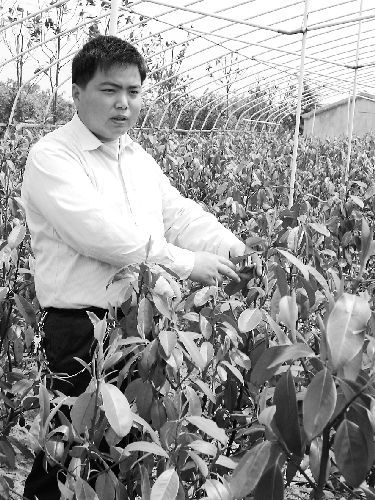 刘义旭曾被评为中国十大杰出青年农民、合肥市十大杰出青年,担任肥西县苗木花卉经纪人协会会长。他介绍说,这批特殊的含笑是他从北京林业大学引种的,在引种一年后,他发现这些含笑与自家的含笑不同,一是开花时的花苞要比普通含笑大五倍;二是花香醇厚,比普通的含笑香味浓郁;三是花期长,种在露天环境下,花期为两度,分别为1月到3月,紧接着是8月到11月。如果放在温室或大棚中,一年要开三度花。