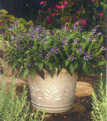 喜荫、耐热,极佳的夏季开花的蓝色品种。非常耐热,叶片油绿宜人,蓝紫双色花。适合在遮荫条件下作为吊蓝和组合盆栽应用。生产周期和栽培方法与观赏椒相似。生产期间喜温、喜光,但花园栽植应用中,则最好是在有遮荫的地方。适于在4.5寸(11厘米)以上的大型容器栽植。