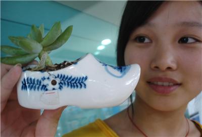 三角形花盆现郑州 苏州出现鞋形盆景