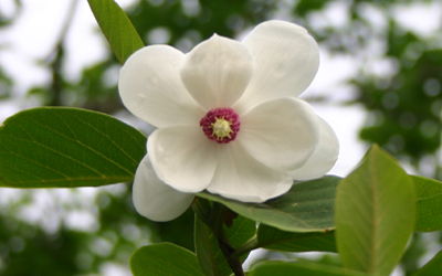 天女木兰花花期在6月—7月间。花瓣乳白色,花蕊红中带黄,极为冷艳。外加该树油绿肥厚的叶子,光滑无纹的树干,整体呈现的就是一种高贵,淡雅的仙女形象。