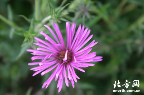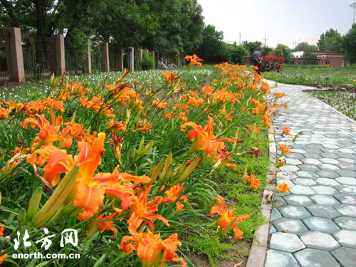 8月6日,北方网记者来到了天津园林绿化研究所的科普试验园内,眼前的色彩立刻丰富了起来,绿叶红花相互映衬,高树矮草错落有致。该所宿根中心研究人员高军介绍说,这个园里试种了从国内外引进的天人菊、桔梗、萱草、景天等13个科属的近百个花卉新品,现在大部分花卉都已盛开,而且这些新品种的花期都比较长,一般在3个月左右,最长的可达5个月,从5月份开始可以持续到9月底。