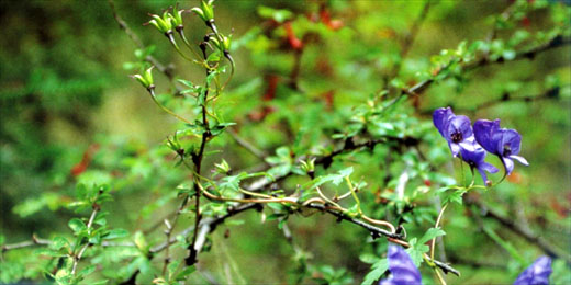 学名 Aconitum longilobum 科属 毛茛科乌头属形态特征 草质缠绕藤本。叶五角状圆形,5深裂,基部心形。花序有花3-8朵,花蓝紫色。花期8-9月。喜冷湿。特产于西藏色季拉山,生于海拔3600-4000m的冷善林中。
