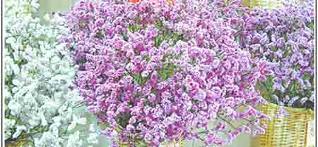 ),补血草科,原产我国内蒙古地区。花色十分丰富,有白色、粉红色、红色、橙色、黄色等。其花为膜质,花期很长,是制作干花的好材料,具有花形、花色不变的特色。种植区域广泛,适应性强。