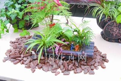 海上生明月:盆器的造型千变万化,让人嫉妒制作者的巧手。在这小小的竹筏之上,高挑的文竹,低矮的吊兰,加上赏月对饮的小人偶,将盆器的特性发挥到极致,寓意海上生明月,天涯共此时。明月是爱情的见证,是无限思念的见证。