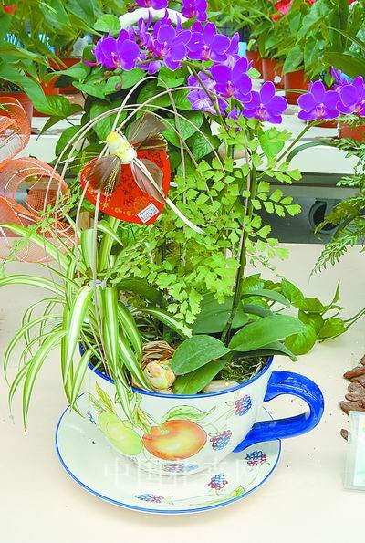 思念:茶杯造型的盆器似乎成了今年的流行,无论是桌面摆放的小形茶杯,还是制作组合盆栽的大茶杯,在市场的任何角落都能吸引消费者的眼球,作品寓意对家人的无限思念,祝愿家人身体健康。