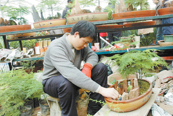在郑州,以往作为观叶植物出售的文竹,如今也开始用于制作盆景了。据经营者介绍,文竹具有价格低廉、取材容易、快速成型、适合规模化生产等特点,现在文竹盆景的销售情况还相当不错。