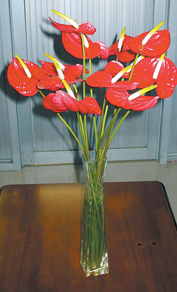 网站导航我是学园艺出身的,在学校有过一年的花艺课程作为基础,这在很大程度上发掘了我对花艺的兴趣。虽然工作后没有从事与花艺相关的工作,但也不能说是毫无关联,我在广州花卉研究中心工作,这为我继续进行花艺制作创造了很好的条件。由于我是在种质资源育种研究部门工作的,因此有很多研究剩余的花材,都成了我十分奢侈的习作材料,尤其是红掌和兰花,品种多样,材料丰富,这常常让我幸福得做梦都想要笑出来。于是,我的居室,我们的办公室,都成为我展示手艺的场所,布置上了自己的作品。