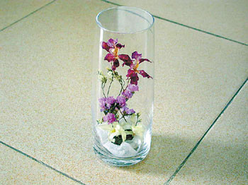 此外,我还热衷于干花花艺的制作。首先摘下新鲜的花朵,用干燥箱烘干,保持它原来的色泽和形态,当然,这一点,我至今也不能做到每次干燥都能成功。然后再买来纯色透明的玻璃花瓶,用轻柔的纱布将花泥包好,固定在瓶底。再根据现有花材和创作需要,一点点地将花插入瓶子里,做成一件可以长久保持观赏效果的花艺作品。作品完成后,再用保鲜膜将瓶口封住,用刀片将膜沿着瓶口一点点地划一圈,再把多余的部分取下来,作品就完成了。它适合于放在书桌、电脑台上装饰,时间久了,只需用块软布擦拭一下外面的尘埃就又可以恢复美丽了。