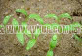 根据种子数量可选择床播或盆播。要求苗床干燥、平坦、背风、向阳,土壤疏松肥沃。可用沙土播种,既利水又有一定的蓄水能力。覆土厚度为0.5cm左右。播种后苗床要保持湿润,不要忽干忽湿或过干过湿。种子发芽出土后,需除去覆盖物,使其逐渐见光,适应后才能完全暴露在阳光下。幼苗过密,应即行间拔,将过密的纤弱苗拔除,使留下的苗能充足吸收阳光,间拔后需立即浇水,使松动的幼苗根部接触土壤。10天左右即可长出2片左右的真叶。