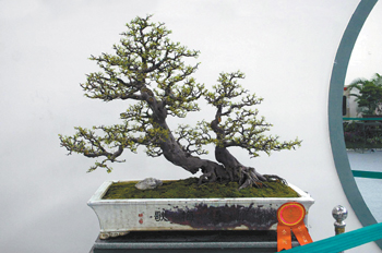 网站导航 盆景《古木雄风》树种为榕树,作者为广东省的叶铭煊。