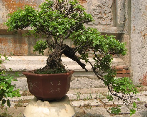 从野外挖掘回来的,一般主干已经定型,不能弯曲攀扎,对此树桩重要根据桩干的自然形态确定造型式样,仅对主枝进行攀扎。