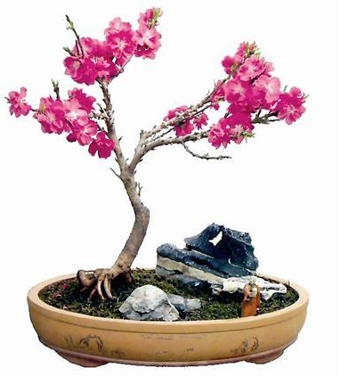 我国是碧桃的故乡,自古就有栽种观赏碧桃的习惯。碧桃具有易成活、盆栽造型时间短、可人工控制花期的良好优势,是布置居室、厅堂、会场的优秀春季观花盆景。碧桃树干柔软,造型容易,可依据树势做成斜干式、曲干式、临水式、悬崖式、双干式和丛林式,甚至可做成提根式等等,一般只要养护得当,3年时间便可培养出造型美观的碧桃盆景。