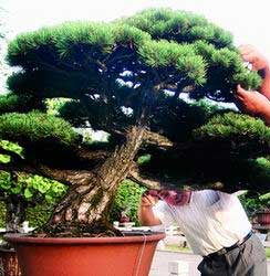 黑松盆景为保持其优美古雅树形,要进行适当 惨剪,修剪在生长期以摘芽为主,每年3~4匀,当新芽伸长但尚未抽生针叶时,可摘去每个顶芽的1/ 2左右,如不需要增长枝条的盆景,可将顶芽全部摘去。对于影响树形美观的枝条,可于休眠期修剪。