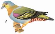习性:栖于半常绿林及次生林,分布至海拔800米。与其他鸽类及犀鸟栖于结实的无花果树。