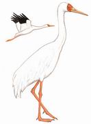 描述:体大(135厘米)的白色鹤。嘴橘黄,脸上裸皮猩红,腿粉红。飞行时黑色的初级飞羽明显。幼鸟金棕色。